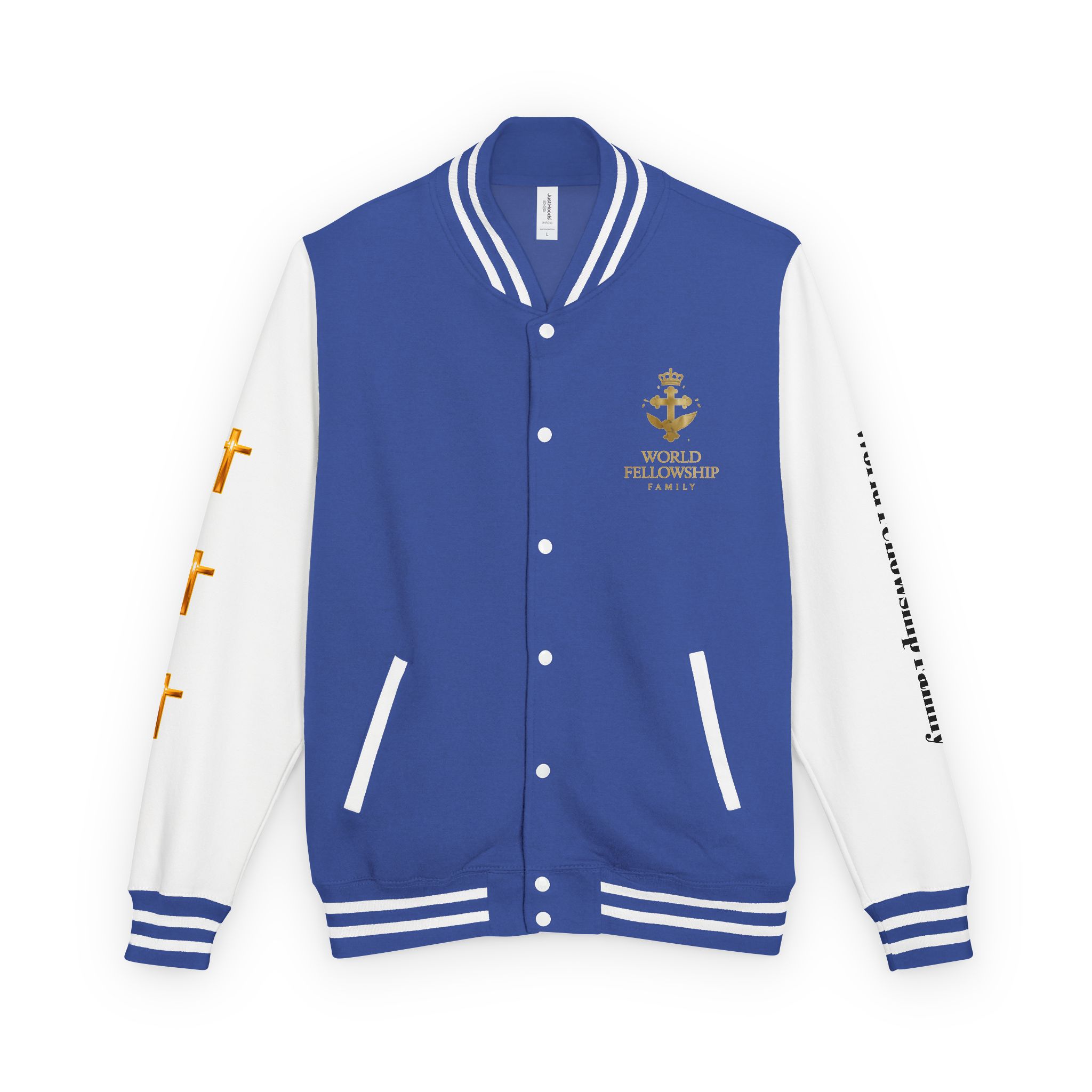 This letterman jacket carries the World Fellowship family mark like a quiet badge of belonging. It feels substantial at first touch—medium-heavy, slightly broken-in—so slipping it on is like stepping into a familiar circle. The garment-dyed finish gives each color a lived-in depth that reads less like new merch and more like a piece you’ve had for years. Crisp team-style details meet cozy, soft ringspun cotton for a look that reads classic but lives comfortably. Wear it to late-night campus gatherings, off-grid retreats, or chilly breakfasts at the lodge; it settles into those moments and holds them. The sewn-in label and U.S. construction speak to careful making, while a dozen colorways let you choose how quietly or boldly you want to represent the fellowship.